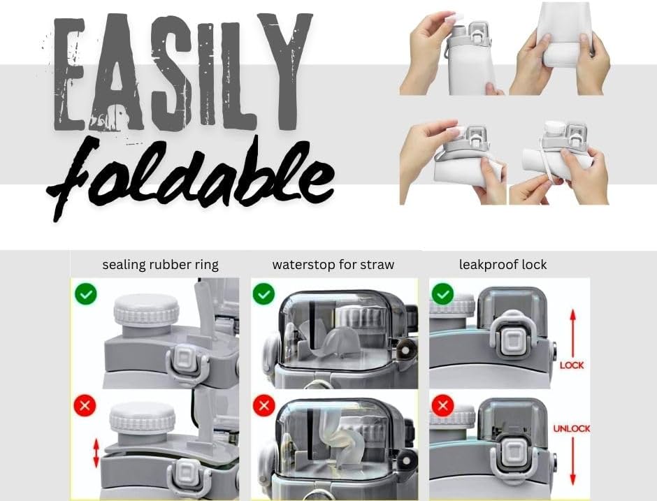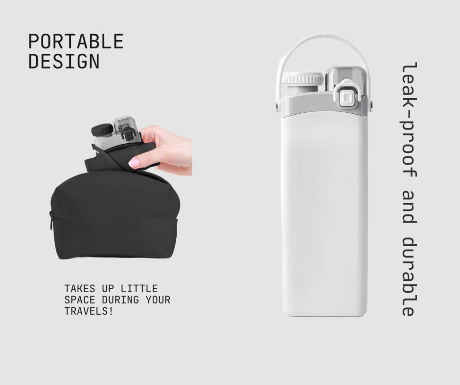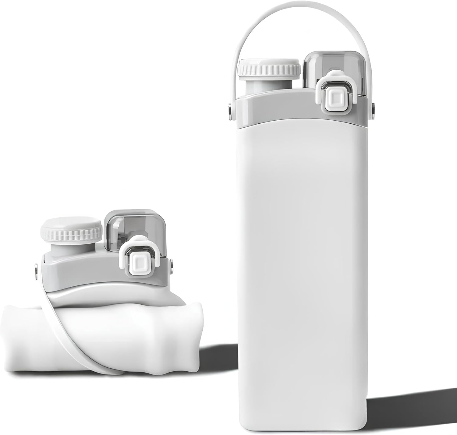 Water Bottles with 600ml(20oz),BPA Free Water Bottle, with Handle for Carrying, Collapsible Water Bottles for Traveling Camping Hiking(White)